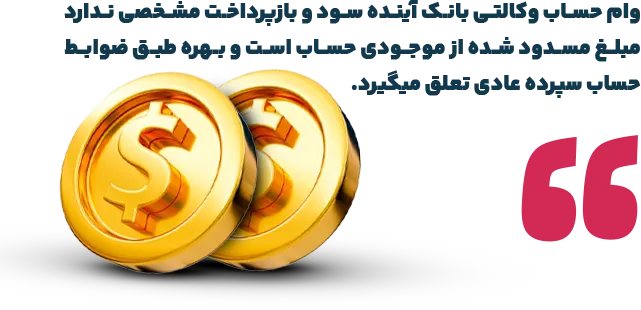 - نرخ سود: مبلغی که در حساب وکالتی مسدود میشود، بخشی از موجودی حساب سپرده شماست. اگر این حساب از نوع کوتاهمدت عادی باشد، ممکن است طبق ضوابط بانک مرکزی و بخشنامههای بانک آینده، سود حداقلی و روزشمار به کل موجودی حساب (شامل بخش مسدود شده) تعلق بگیرد. این سود، سود معمول حساب سپرده است و ربطی به “وام” ندارد. هیچ بهرهای بابت وکالتی بودن حساب از شما کسر یا به شما پرداخت (بیشتر از سود عادی سپرده) نمیشود.